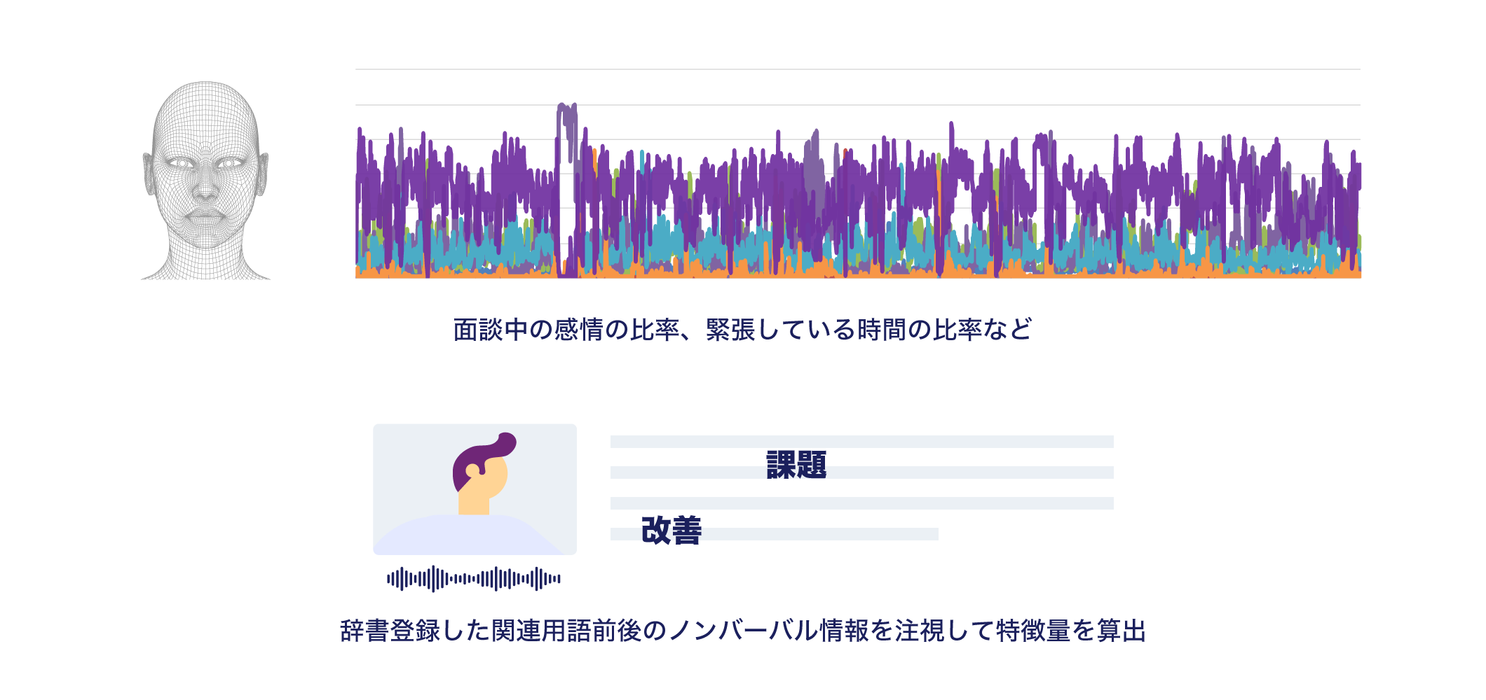 表情から感情を、会話から言葉の特徴を解析