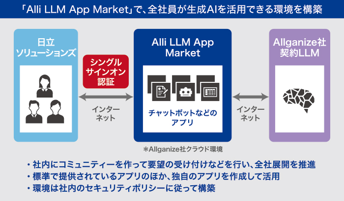 こうした特長に加えて、日立ソリューションズがリセラーとして「Alli LLM App Market」をすでに取り扱っていることも導入の決め手となりました。
