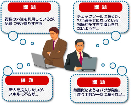 - 厳選したチェックルールを用意しています。複数の外注先に共通のチェックルールを適用することで一定の品質を得ることができます。