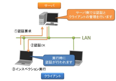 クライアントモードは、ライセンスサーバー(サーバーライセンスをインストールしたPC)に認証を行い、インスペクションを実行します。