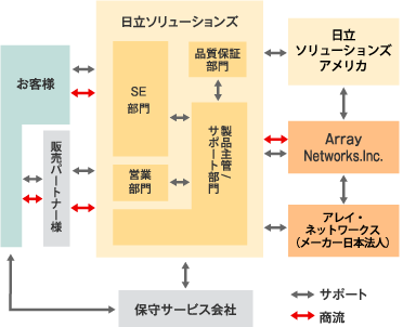 最終的にArray製品を導入し、ご利用いただくお客さまです。お客さまへの製品サポートは日立ソリューションズが提供いたします。