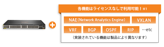 Arubaスイッチの特長として、各種ダイナミックルーティングなどの主要機能を追加ライセンスなしでご利用いただけます。