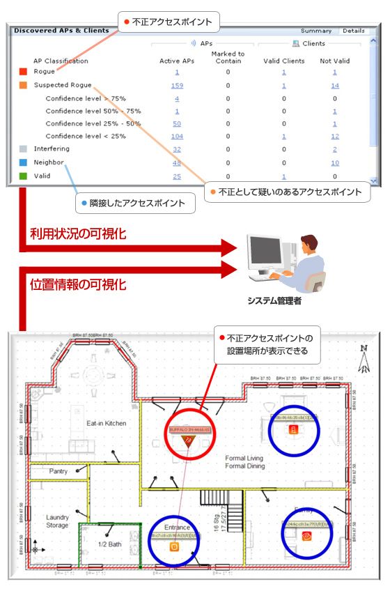 - APは隣接、または不正として疑いのあるデバイスを検知