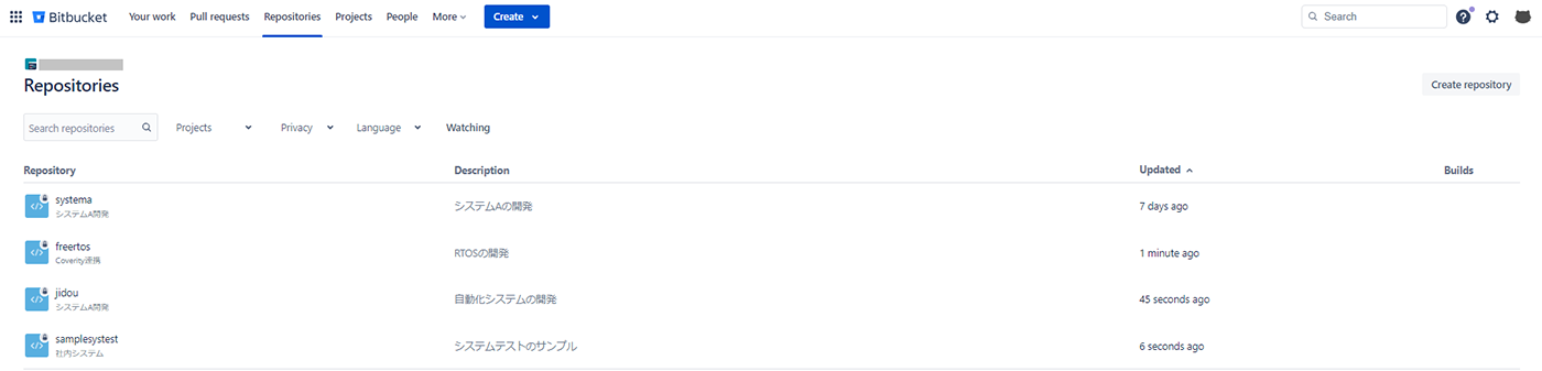 Bitbucketは、会社や組織全体のGitリポジトリの作成、管理を一元的に行うことができます。分散したすべてのコードを一元的に管理し、プロジェクトの最新状況を把握することができます。