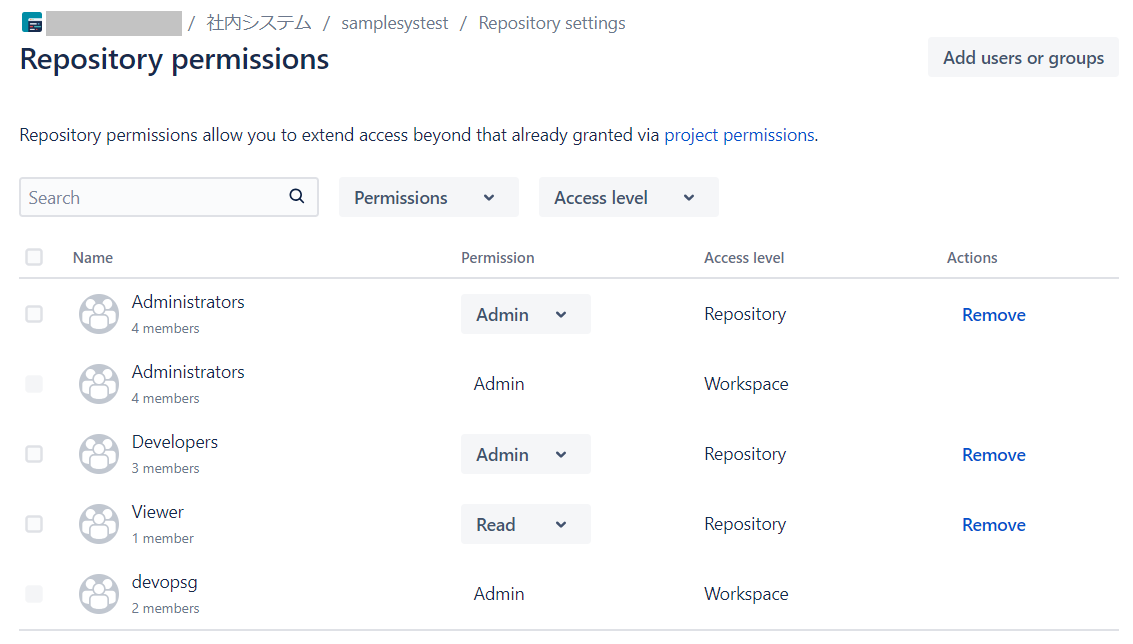リポジトリ単位にユーザーのアクセス件(リード、ライト、管理者)の設定が可能です。また、オプション製品のAtlassian Guardを利用することにより、IdP連携が可能になります。