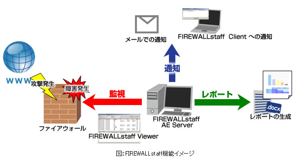 株式会社日立ソリューションズ(本社:東京都品川区、取締役社長:林 雅博/以下、日立ソリューションズ)は、 ファイアウォール・UTM(Unified Threat Management:統合脅威管理)機器の稼働状況や発生しているトランザクションを監視し、 その結果を通知・レポートする新製品「FIREWALLstaff(ファイアウォールスタッフ)」を、10月18日より提供開始します。 本製品はサイバーアタックやウイルスの発生、ファイアウォール自体の異常状態発生などの脅威から企業を守り、 ファイアウォール管理者は容易にその状態を把握できます。また、ネットワークの利用状況や攻撃防御の統計など、 ファイアウォールのログを集計し様々な切り口でのレポートを生成するため、適切な設定・変更に役立てることができます。