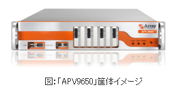 「ArrayAPVシリーズ」は、負荷分散機能をベースに、暗号通信を高速化するハードウェアSSLアクセラレータ、コンテンツ圧縮、サーバーの負荷を軽減する高速リバースキャッシュなどの機能を標準搭載し、Webシステムやアプリケーションの高性能、可用性、信頼性を実現します。本シリーズの中で「APV9650」は、10GEthernet×8ポート、ハイスピードHTTPプロセッシング技術などにより、ボックスタイプとしては業界最速クラスの最大スループット60Gbpsを実現し、大規模ネットワークを有する企業やキャリア、データセンター向けに優れたソリューションを提供します。