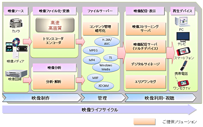 | 映像アーカイブソリューション | 大量の映像をデータベース化し、高速に検索、視聴を可能とするソリューション |