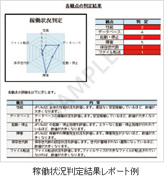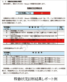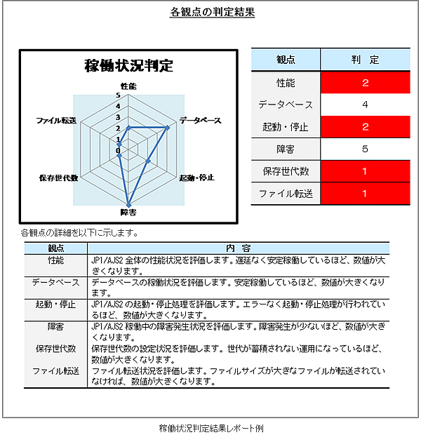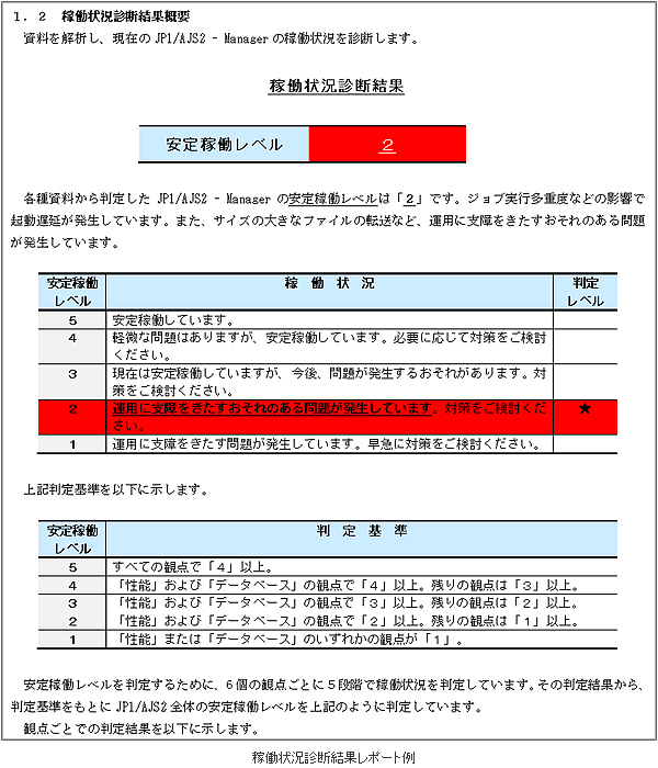 本サービスは、JP1シリーズのジョブ管理製品「JP1/Automatic Job Management System 3」の稼働状況、性能見解やデータベースの稼働状況などの診断結果と改善策のレポートを提出します。