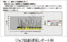 これらの課題を解決するために、日立ソリューションズはローソンの所有するJP1ジョブ管理基盤の診断を行い、稼働状況が一目で把握できるように、約30ページからなる7種類のグラフと表で"見える化"した診断結果レポートを提出しました。診断の結果、ジョブの遅延は重大な障害の予兆であることが判ったため、当社はこれまでに培ってきたJP1のノウハウを活かし、ジョブの作り方や実行結果履歴の保存世代数の削減などの改善策を提案しました。この当社によるシステムの無停止を前提にしたきめ細かな作業工程の提案と改善策の実施により、ローソンはジョブの遅延を解決することができました。また、サーバ増設の必要性に関しては、物理的にサーバを増設せず、論理的な構成変更だけで3万件のジョブを追加できることが判り、余分な投資を抑えることができました。