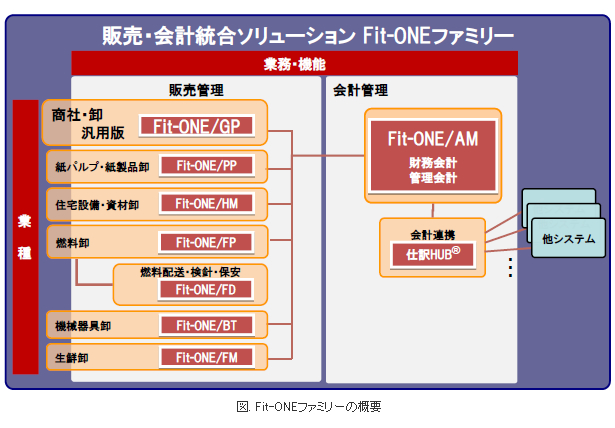 株式会社日立ソリューションズ(本社:東京都品川区、取締役社長:林 雅博/以下、日立ソリューションズ)は、販売・会計 統合ソリューション「Fit-ONE(フィットワン)」の販売管理システムを専門商社・卸業の5つの業種向けにテンプレート化し、ファミリー製品として4月2日から販売を開始します。これにより、専門商社・卸業のお客様は、自社にとって最適なテンプレートを活用することでシステム構築にかかる期間とコストを削減できます。