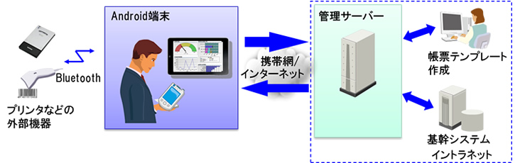 通信制御やファイル操作、印刷など、業種を問わない共通機能は、これまでのAndroid端末向けの開発ノウハウを結集した独自の基盤で提供します。これらを利用することで、短納期で高品質な業務システムを構築し、機能拡張にも柔軟に対応します。