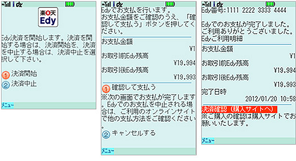 従来、「おサイフケータイ®」機能付き携帯電話での決済は、商品を選択した後、「決済開始メール」を受信することで楽天Edyアプリが起動し、決済を実行する手続きを踏まないと完了しませんでした。このたび、「Mobile Edy Direct」方式に対応したことにより、メールを送受信することなく、支払いサイトから直接、楽天Edy決済を行うことが可能となり、決済までの手続きが簡略化され利用しやすく、購買機会の損失を縮小できるようになりました。