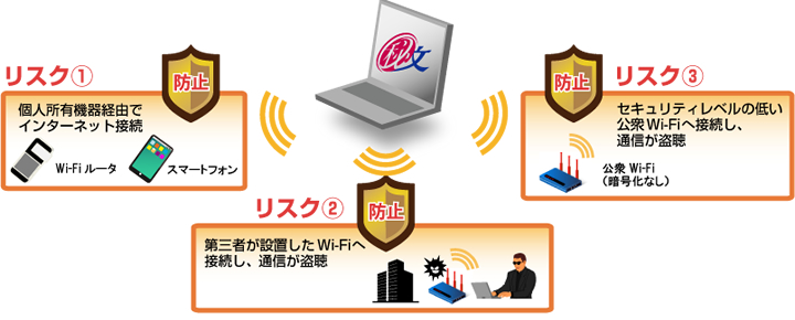 図1:Wi-Fi環境における「秘文AE AccessPoint Control」でのセキュリティ対策イメージ