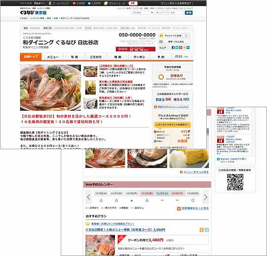 「ぐるなび」リニューアルにより、店舗ページへのアクセス数が2013年7月~9月で前年同期比142%、予約システムの月間予約件数が2013年12月で前年同月比579%と大幅に増加しました。