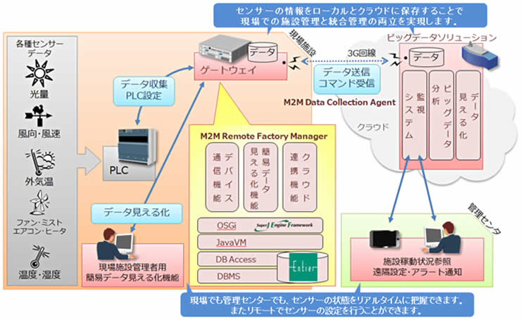 図:M2M遠隔施設管理システム「M2M Remote Factory Manager」と「M2M Data Collection Agent」の連携
