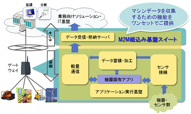 また、合わせて、日立ソリューションズは、センサーデータの収集から業務システム連携までの基盤を提供するM2M(Machine to Machine)関連のソリューションを「M2M組込み基盤スイート」としてまとめました。