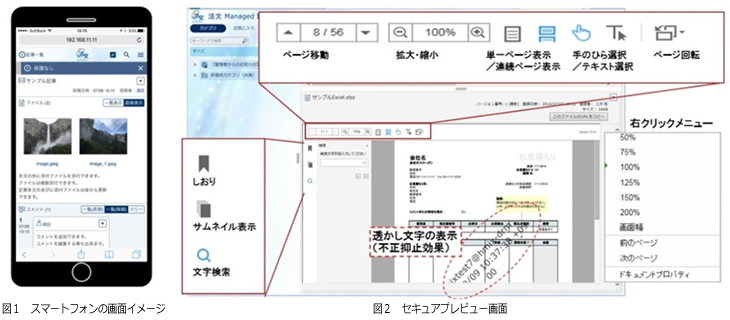 最新版では、画面のスマートフォン対応や、ファイルをクライアント端末にダウンロードしない参照、クラウドサービスやプロジェクト管理をはじめとする業務アプリケーションとの連携強化を実現しました。