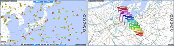 人流や交通流などの動的な大量データをWebブラウザでアニメーション表示し、業務効率向上やサービス向上に役立てることができます。例えば、人の移動動線上に屋外広告を設置するフリークエンシーメディア企画や、タクシーの最適配備などで活用することができます。また、電車やバス、飛行機の運行情報や混雑状況などをリアルタイムに提供するサービスを構築することも可能です。