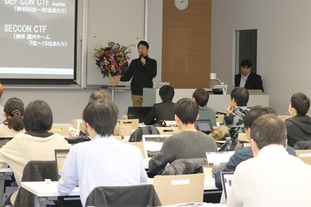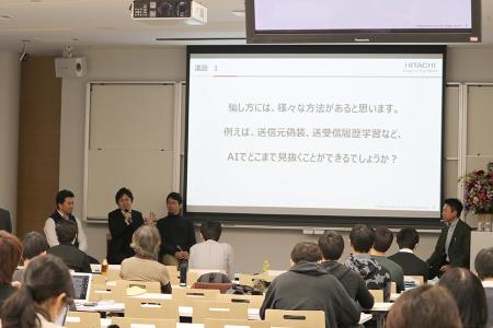 2019年6月に両者はセキュリティ分野で連携し、日立ソリューションズのホワイトハッカーやセキュリティコンサルタントが講師となり、「情報セキュリティの現場論」の講座を正規科目として実施しました。また、2020年2月3日に、「巧妙化するサイバー攻撃、ビジネスメール詐欺をAIで守れるか」をテーマに、シンポジウムを共同開催しました。