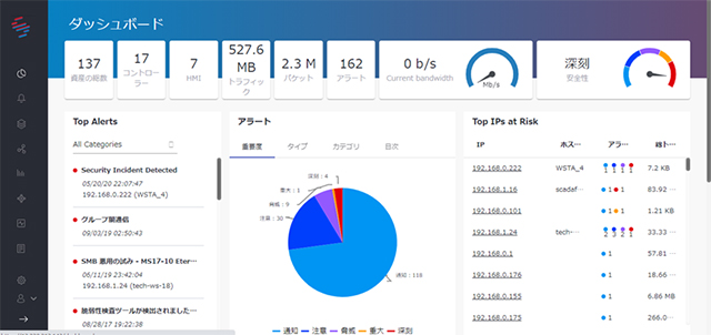 「SCADAfence Platform」は、AI(人工知能)で不審な通信を早期に検知することでセキュリティ対策を支援します。また、制御システムやIoT機器の一元管理も可能とします。