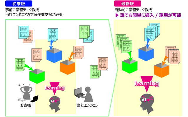 最新版では、AIモデルを構築するために、必要な学習データ*1の作成を自動化しました。これにより、担当者の手作業による学習データの作成が不要となり、短期間で利用できるようになります。