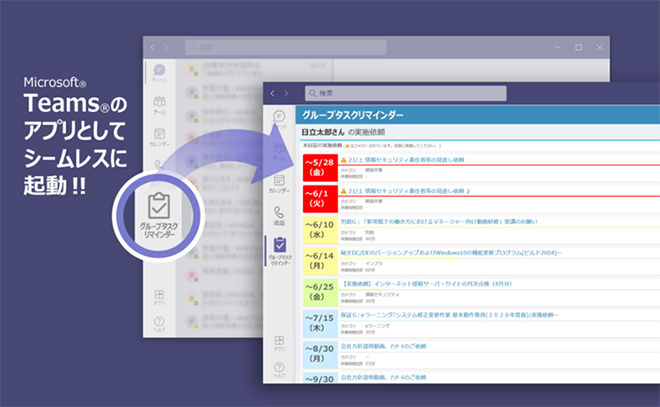 株式会社日立ソリューションズ(本社:東京都品川区、取締役社長:山本 二雄/以下、日立ソリューションズ)は、マイクロソフトの「Microsoft Teams」上からも利用できる、社員への教育受講やセキュリティ対策などの依頼事項を期限内に確実に完了させることを支援するクラウドサービス「グループタスク リマインダーサービス」の最新版を6月4日から提供開始します。