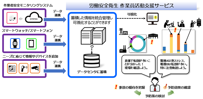 生体情報や気象情報、位置情報を統合管理し、属性分析による労働災害の未然防止を支援