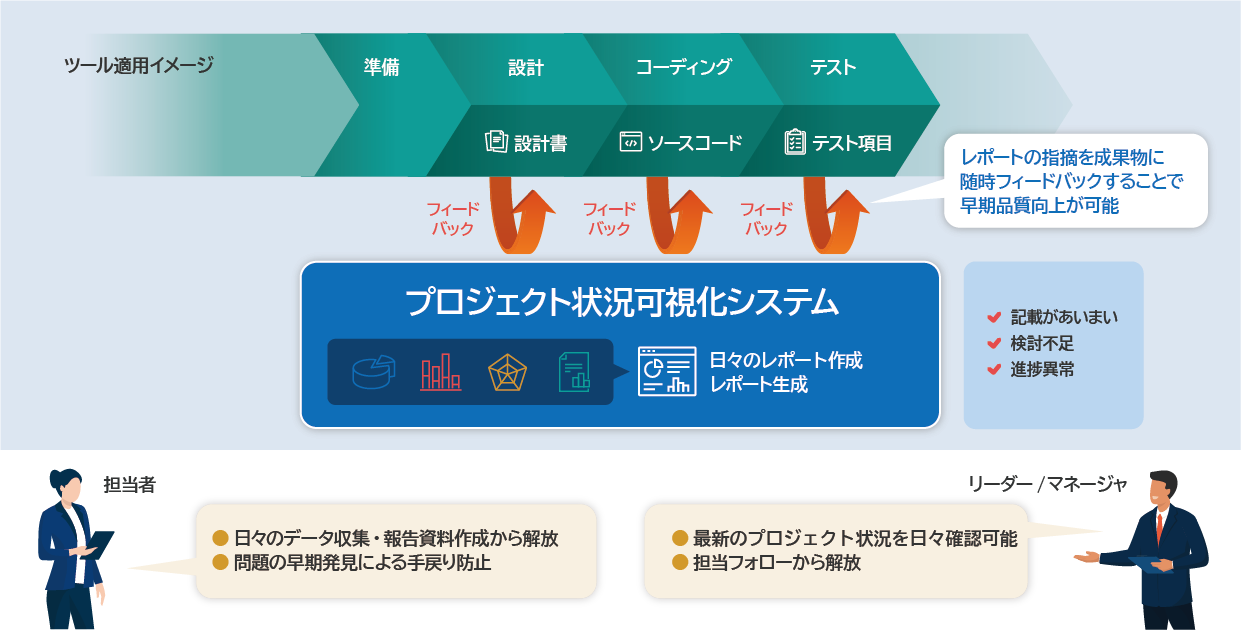 図1:「プロジェクト状況可視化システム」を適用したプロジェクトの流れ