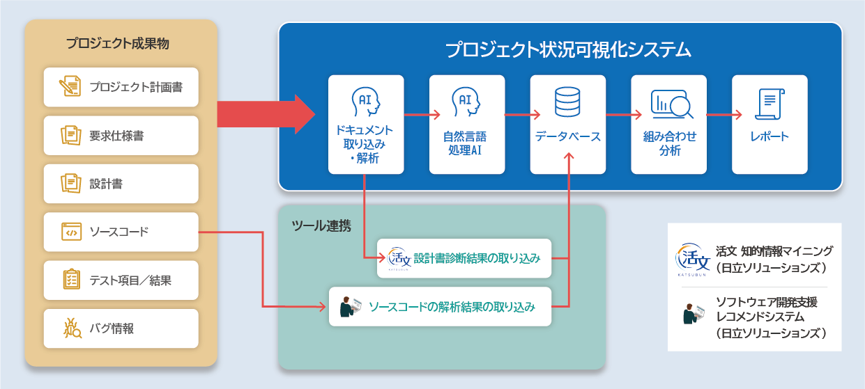 株式会社日立ソリューションズ(本社:東京都品川区、取締役社長:山本 二雄/以下、日立ソリューションズ)は、車載ソフトウェアの開発において、AI(人工知能)技術を活用し、文書やソースコードからプロジェクトの品質不良や工期遅延リスクを早期発見することで、手戻りの防止や業務効率向上を支援する「プロジェクト状況可視化システム」を10月21日から販売開始します。