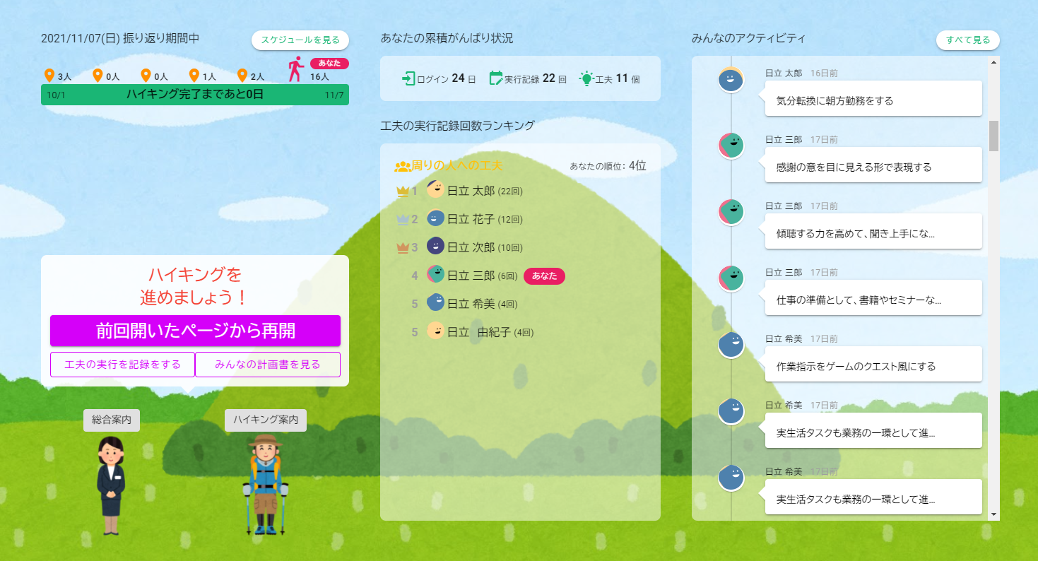 その工夫を実践し、日々の業務を振り返り、次に活かすための改善点などをシステムに登録していき、さらに毎月達成度を振り返り、次の改善計画につなげます。