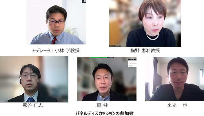 パネルディスカッションでは、早稲田大学 データ科学センター 小林 学教授をモデレータに、パネリストとして早稲田大学 横野准教授、日立ソリューションズ ホワイトハッカーの米光 一也、セキュリティエバンジェリストの扇 健一、熊谷 仁志が登壇しました。