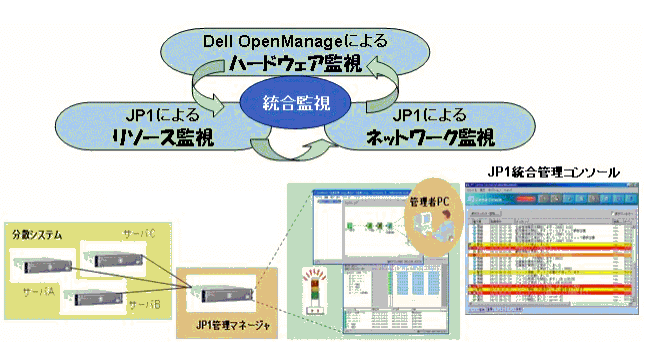を実現します。お客様企業は、OpenManageで把握されるハードウェアの障害情報と、JP1で監視