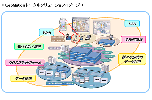 *「GeoMation」は、地図を利用した各種業務システムを実現するために、様々な形式のデータと統合・連動可能なエンタープライズ型のGIS商品です。