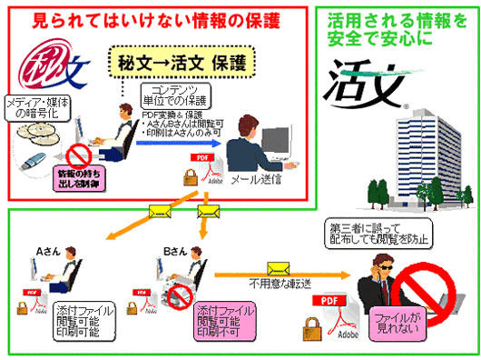日立ソフトは、「秘文」と「活文」の組合せ・連携により、「情報を持ち出させない」かつ「持ち出しても守る」という確かな信頼を実現するソリューションを提供して参ります。