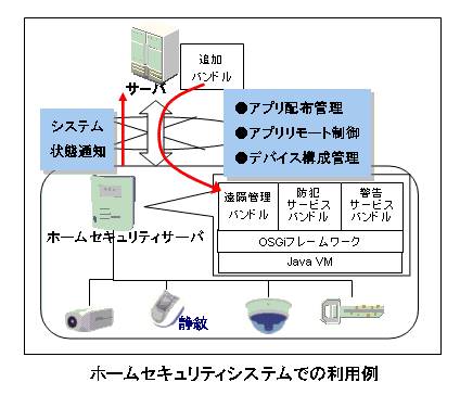 OSGiは、Java仮想環境上で稼動し、多様な機器やサービスを統合管理するサービスプラットフォームであり、標準化団体であるOSGiアライアンスによって標準化されています。最新のOSGi Release4(Ver4.01)は、2006年7月に公開された最新の仕様です。OSGiはNGN(次世代ネットワーク)分野でも注目を集めており、NGN対応ホームサーバに搭載するソフトウェア基盤として検討されています。株式会社日立製作所の情報家電サービス基盤では、ホームゲートウェイおよび連携するサーバ側のコンポーネントに「SuperJ Engine Framework」と関連技術が採用されています。