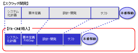 | 比較項目 | スクラッチ開発 | Fit-ONE | パッケージ +カスタマイズ |