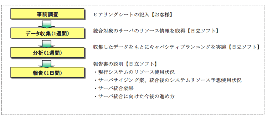 日立ソフト(執行役社長:小野 功、本社:東京都品川区)は、仮想化によるサーバ統合やデスクトップ環境の集約を実現する「仮想化SIソリューション」をこの度体系化し、本日より提供を開始いたします。ソリューションの提供開始に伴い、2007年10月29日から、期間限定で「サーバ統合アセスメントサービス」を無償で提供いたします。本サービスでは、実際のお客様の環境で統合対象のサーバの稼動情報を収集し、統合後に必要となるサーバ台数を算出するキャパシティプランニングを実施します。
