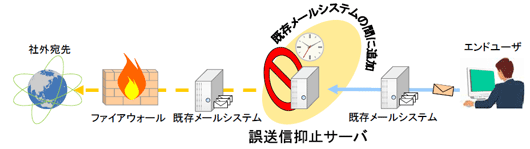誤送信抑止サーバはメールゲートウェイとして配置するため、容易に導入することが可能です。