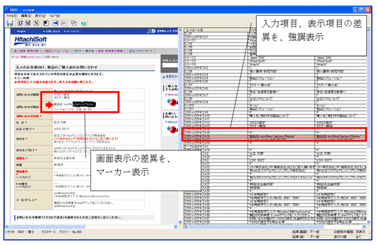 ■ テスト結果自動検証機能により、実行結果画面を以前の画面と比較し、デグレード確認を行います。