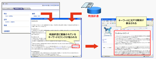 | 文書公開 | 登録文書をHTML化することで閲覧時のクライアント側への負荷を軽減 Wikiの辞書と連携することでHTMLに含まれるキーワードに自動的にリンク |