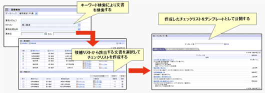 ・キーワード検索によりフォーマットと規程を並べて表示することで文書を個別に検索する必要がなく文書作成時の効率を向上します。