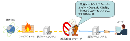 上長承認機能を実現する、「留め~る」誤送信抑止サーバはメールゲートウェイとして配置されるため、容易に導入することが可能です。