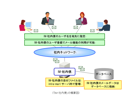 株式会社NTTデータ イントラマート(本社:東京都港区、代表取締役社長:中山 義人、以下イントラマート社)は、日立ソフトウェアエンジニアリング株式会社(本社:東京都品川区、執行役社長:小野 功、以下 日立ソフト)が開発した社内専用Webメールシステム「IM-社内便(アイエムシャナイビン)」を、2009年3月11日よりOEM製品として提供開始します。