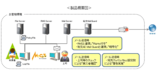 ※1 前提として、弊社 秘文AE MailGuard、もしくはMicrosoft社 Rights Management Services(RMS)が必要です。