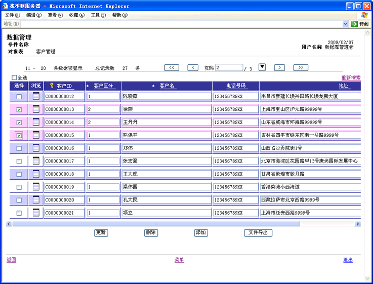 Web画面上で簡単にメンテナンスをすることができます。また、データ更新時に項目の属性もチェックしていますので、 利用者が誤ったデータを入力することを未然に防止します。