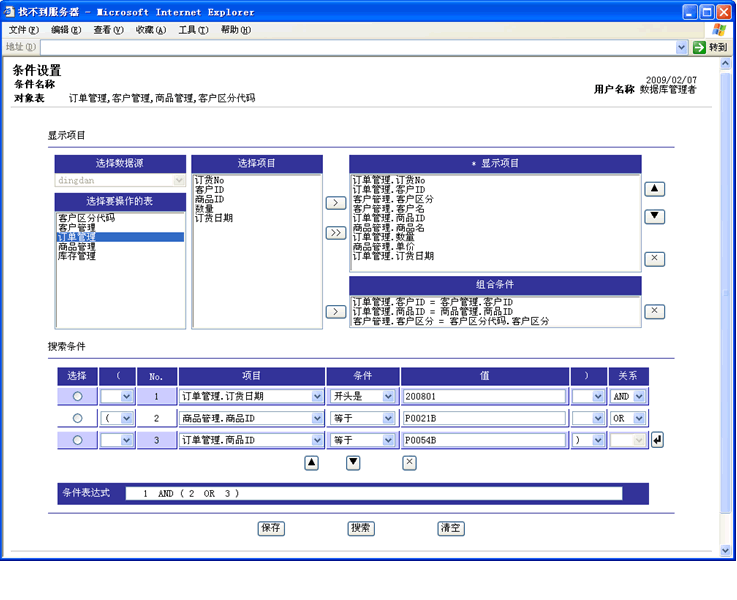 検索の条件をWebメンテナンス画面上のクリック操作で簡単に指定でき、条件を登録しておくことで、定型的な検索としても利用できます。