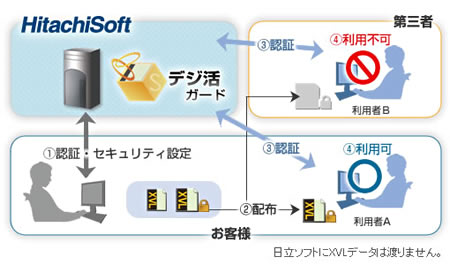 日立ソフトとラティスは2007年にXVLのセキュリティ事業で提携し、両社はXVLのセキュリティ製品「活文 XVLstaff」と、 それに対応するXVL製品の提供を開始しました。また、連携強化の為、両社は同年に資本業務提携しました。セキュリティサービスの「SaaS型 3Dデータセキュリティサービス 活文 デジ活ガード」は、 初期費用21万円、1ユーザ月2,100円(ともに税込み)より利用可能です。両社は3Dデータ活用におけるセキュリティ事業を推進し、 100社の契約件数獲得を目標としています。