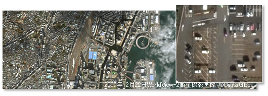 本サービスにより、現行の「QuickBird」、「WorldView-1」の運用にこの「WorldView-2」を加えた3機体制による運用が開始されると、 その1日の撮影能力はおよそ200万km2(日本の国土の約5倍)となり、アーカイブ画像の整備範囲拡大および画像更新頻度の向上が実現できます。 また、3機体制の撮影能力を活かし、緊急時は同一地点を毎日撮影することも可能です。 また、本サービスでは業界初の高分解能8バンドマルチスペクトルデータ(注1)を採用しており、これまでにない詳細な画像を提供できるようになります。