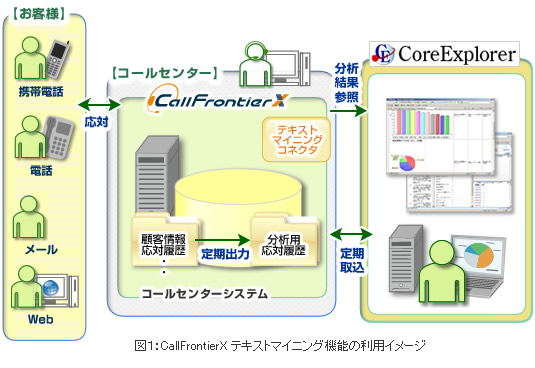 のテキストマイニングツール「CoreExplorer(コアエクスプローラー)」を連携させる「CallFrontierX テキストマイニングコネクタ」を新たに開発しました。
